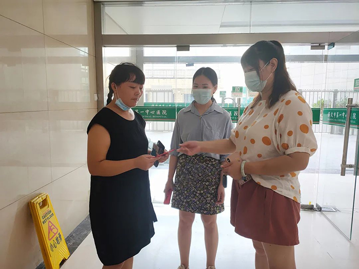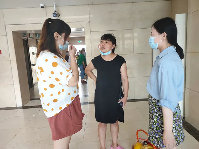 2021年7月5日,馨冠食品婦女聯合會成員賈艷、王越、王曼帶著各位婦女代表的祝福和關懷前往保定市第一中心醫院看望陳曼母親。由于疫情期間,醫院嚴禁探視,我們未能見到陳曼母親本人。