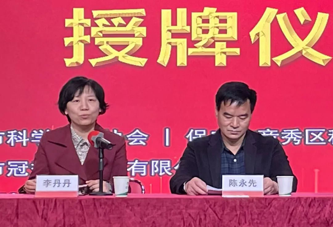 保定市科協副主席陳永先、市科協普及部一級主任科員王芳,競秀區區委常委、統戰部長李丹丹,競秀區科協主席蘇洪瑞,保定市冠香居食品有限公司董事長盧長永出席授牌儀式。